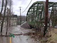 2011, APRIL 7. Chilly, temperature in the 40s, cloudy, a couple of inches of snow the night before (rare in April here, but not unheard of). River high and cold due to late spring. Hiked back into the woods and went into the river at a meadow. Almost immediately began seeing fish but they were quite picky - lots of window shopping. Got a nice 20-inch rainbow on white conehead marabou muddler after a while, then things slowed. Tried various other things - gnat, wooly bugger, royal wulff - with no luck. Back to yellow conehead marabou and soon caught an 18-incher, so I guess bright streamers were the ticket this day. Both fish were strong fighters, the first diving down like a carp, the second roiling the surface. Very cold water: my feet froze making it difficult to wade back to shore and hike to the road. When I got back to the parking area, I chatted with a woman angler who was also packing up. She said she trains other women to flyfish, charging $300 for 5 lessons! "Most want to surprise their husbands," she explained.