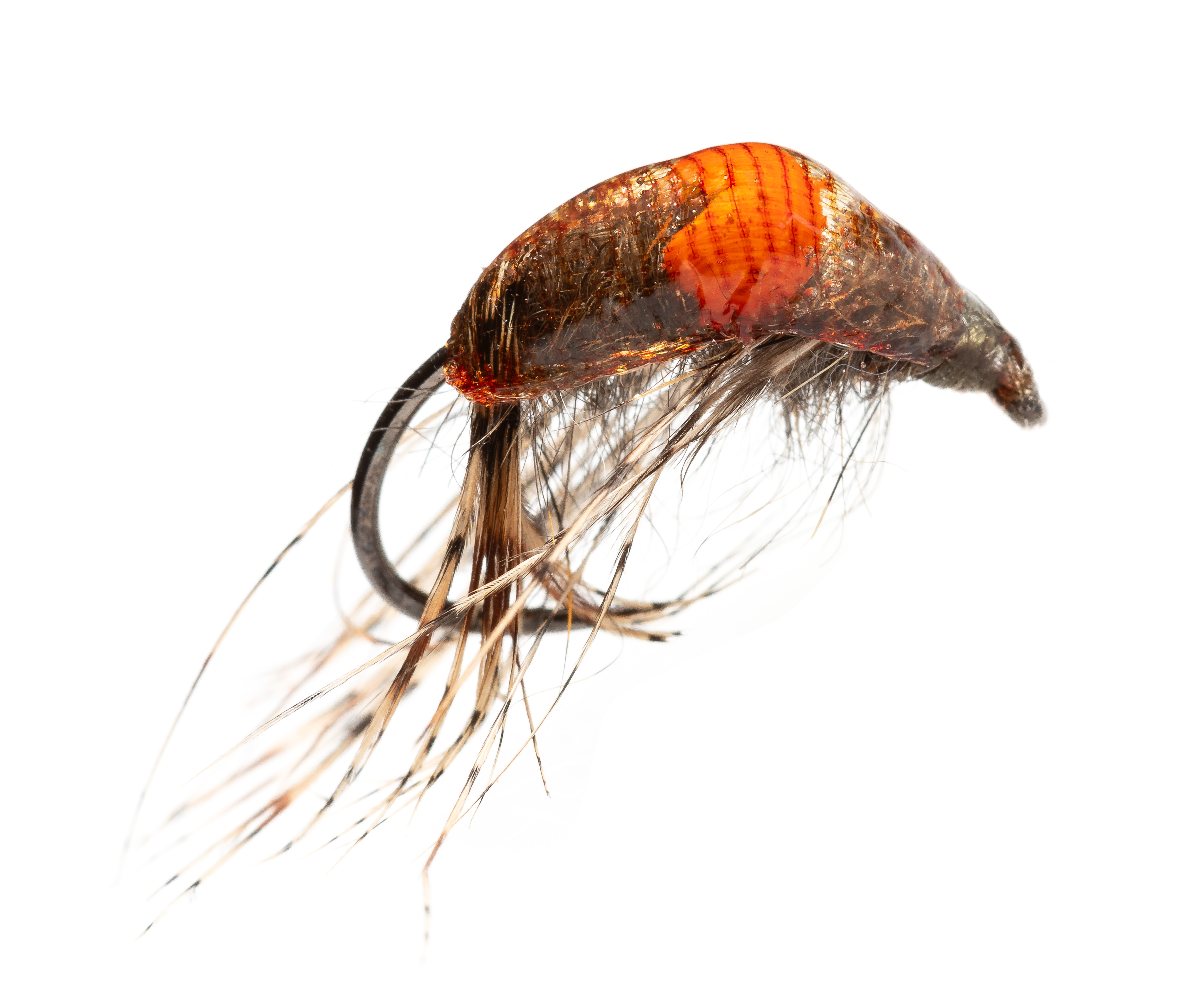 3. Tie in a partridge feather at the back of the shank, dub up to the bead, wind the hackle forward and tie in.