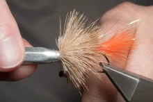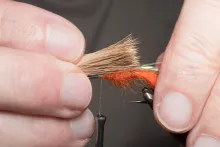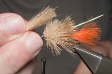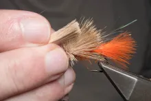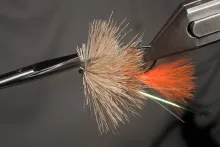 11. Prepare subsequent bunches of deer hair, tie in an spin and flare around the shank