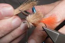 A small muddler with a dab of orange that’s come out of my vise many times in many versions, and is a good example of a high-floating trout fly