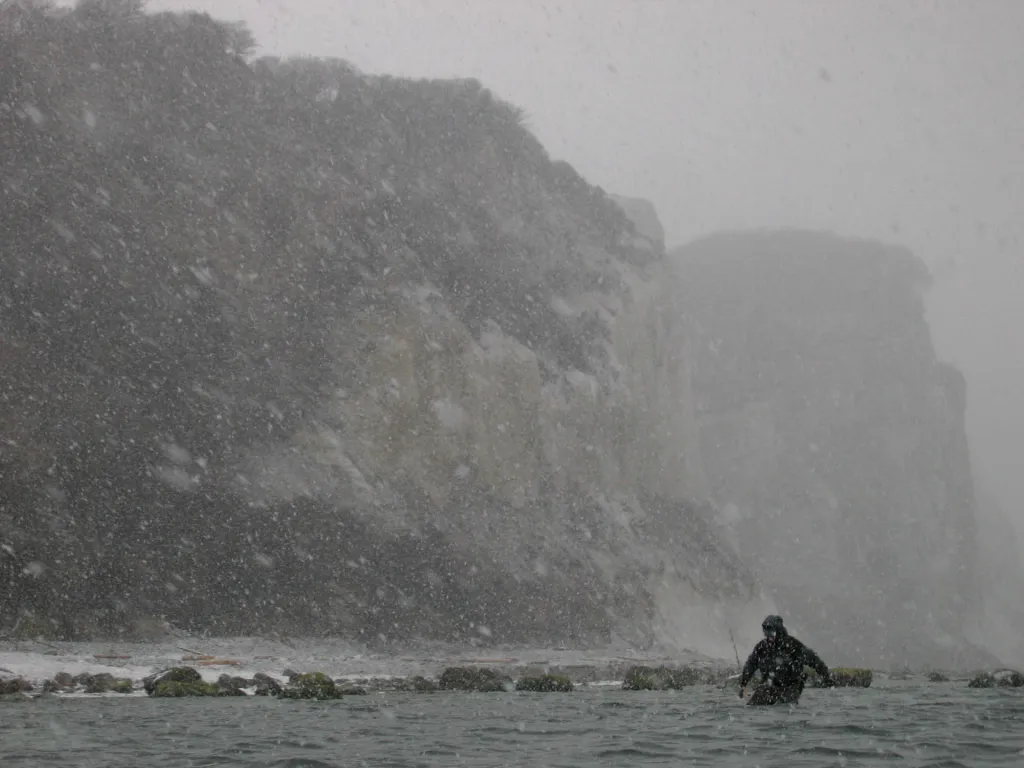 Fishing on a winter day where the weather changed from fair to crazy in a very short time.
