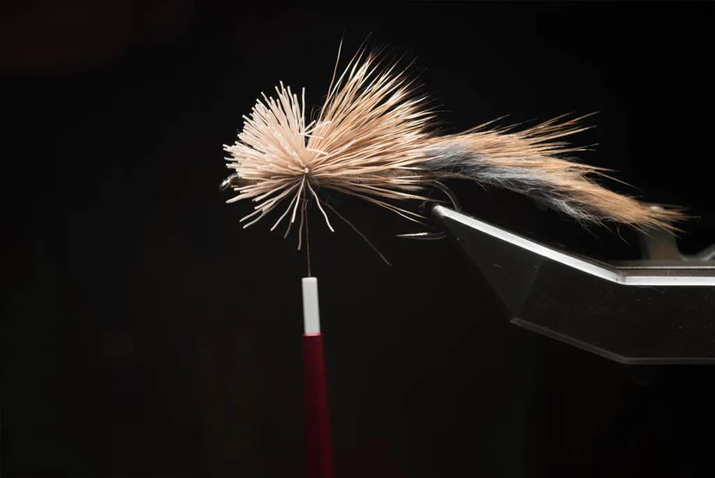 Deer hair tied in and flared