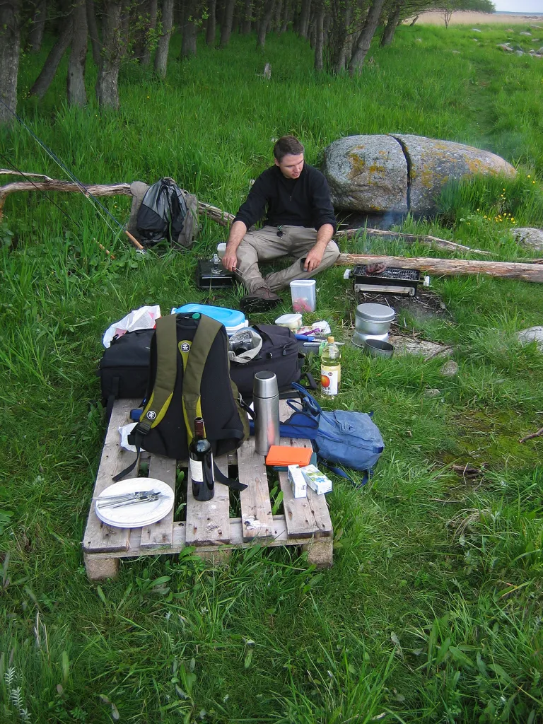Just a little gear … and a barbecue, plates and cutlery, some Brazilian beef … and a bottle of red wine.