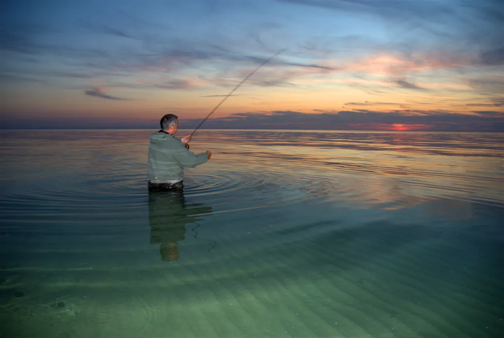Henning casting into a summer sunset.