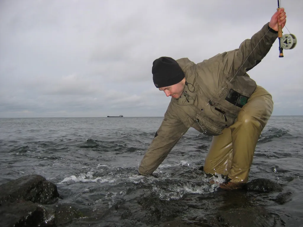 Kasper dipping the whole hand to land a fish.