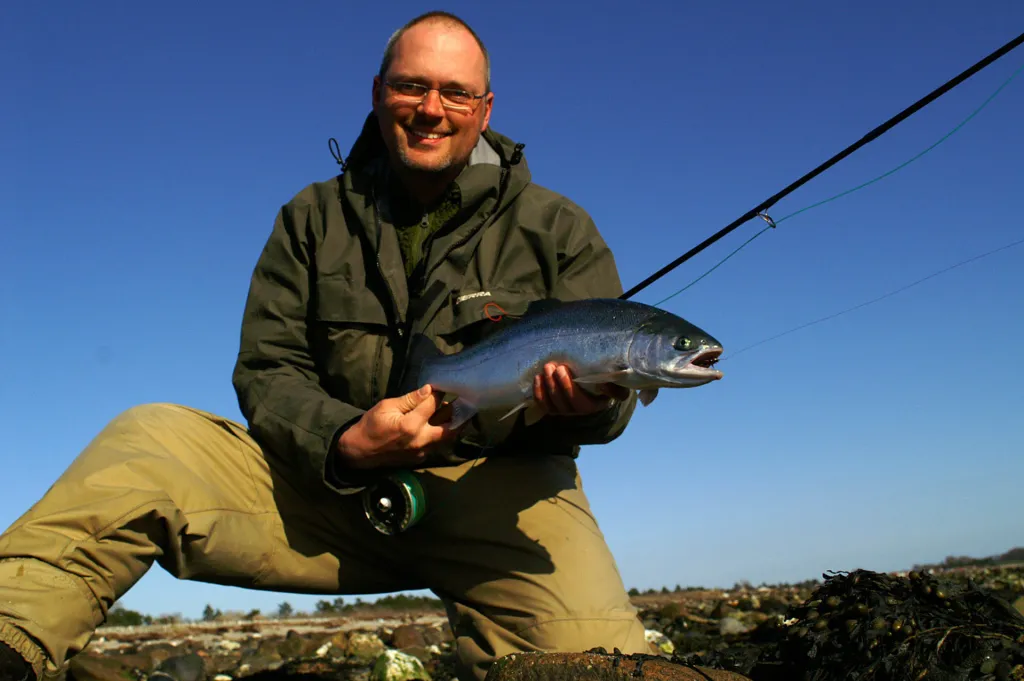 Self portrait with a very healthy sea run rainbow, a welcome bycatch when fishing for sea trout.