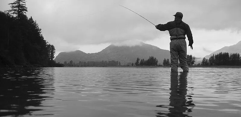 Ole hunting for milling coho in a quiet backwater on the Harrison.