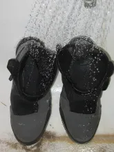 Their one immediate disadvantage was the curse of suede: stiffness. When suede dries after a day soaked in water, it stiffens quite dramatically. Next time you want to wear them it's somewhat a fight to squeeze your feet into the tight space.
