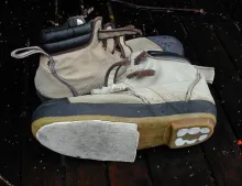 My latest boots have been a pair of Danish Scierra boots, which are classical leather boots with laces and full felt soles with spikes. They are very comfortable, but a bit on the heavy side, which might bother some people.
