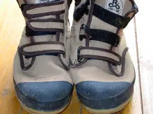 Not surprisingly I opted for a cheap pair, and wound up with some Chinese canvas boots with velcro closing. The boots were quite nice, lightweight and compactable because of the soft upper fabric.