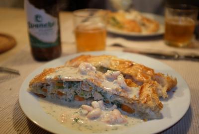 - or as a main course with rice and a bechamel sacue with shrimp