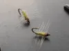 I need a pattern for a John Deere which is popular at Bennett Spring, Missouri. The fly is tied on a jig hook with a green head and yellow eyes but I don't know the colors of the body and tail. Surely appreciate any assistance.