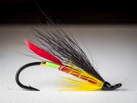 | Hook | Size 4 traditional heavy wire salmon hook, like TMC7999 |
