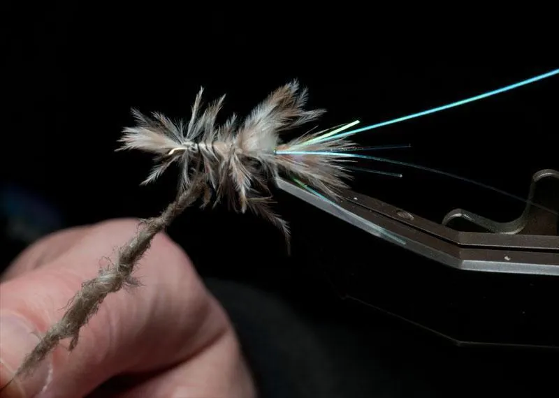 Pluck some dubbing from the chickabou and twist it on the thread as a dubbing "noodle"