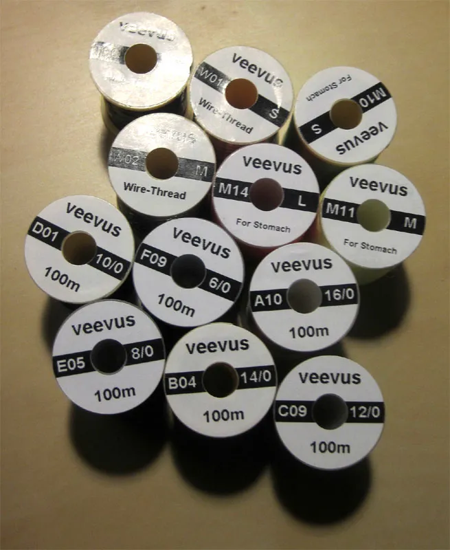 As you can see Veevus has a large number of derniers on the program. The well known 6/0 and 8/0, but also 10/0, 12/0, 14/0 and even 16/0, which is very thin.