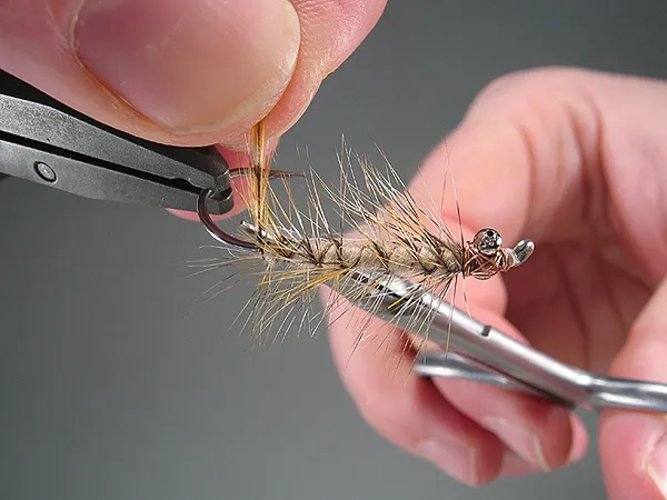 Trim the thread in front and the hackle tip in the rear and varnish the head - tying thread copper wire and eyes - a couple of times.