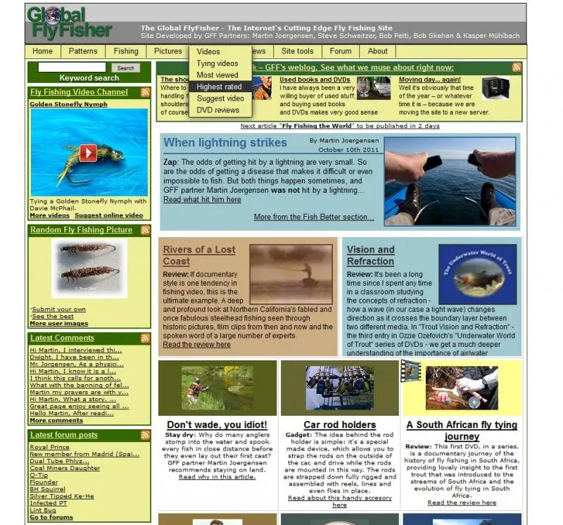 GFF'sd current look (late 2011) with lead articles and a drop down menu