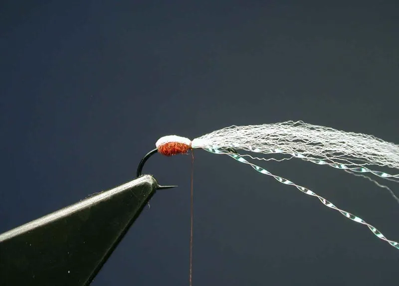 Fold the poly yarn over the abdomen, Humpy style, and tie down with a few wraps.