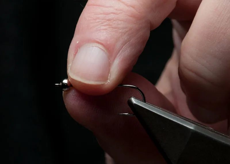 Push the bead forward over the thread and glue