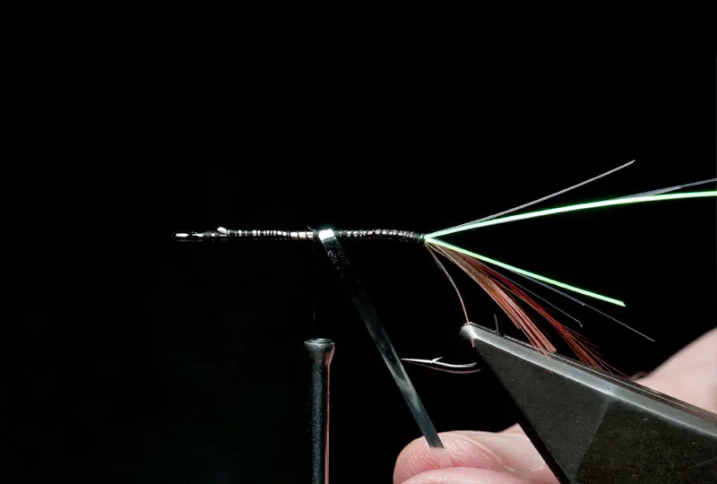 Tis the tinsel in in the middle of the hook shank, silver side down