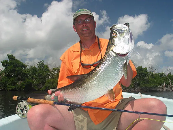 Happy me with a nice 10 lbs. or 5 kilo tarpon - probably the largest I caught on the trip.