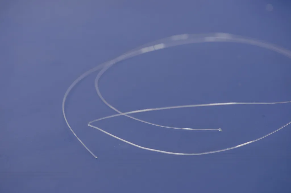 A sharp bend in a piece of nylon makes it easy to pass through the tube of the bobbin holder