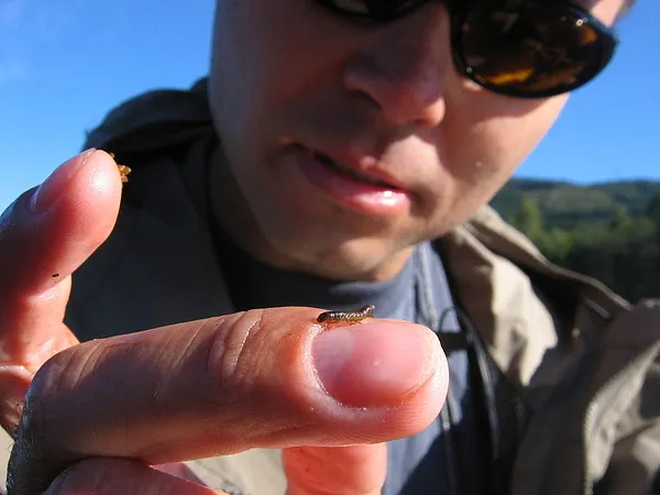 Kasper has dug out a caddis larva of the Ryacophelia type.