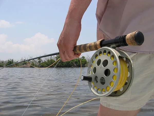 A typical position: Waiting for the tarpon in the stern of boat with fly and rod ready.
