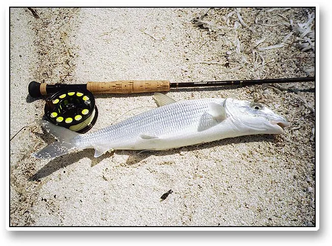 An absolutely decent bonefish struggeling on the sand just prior to its release.