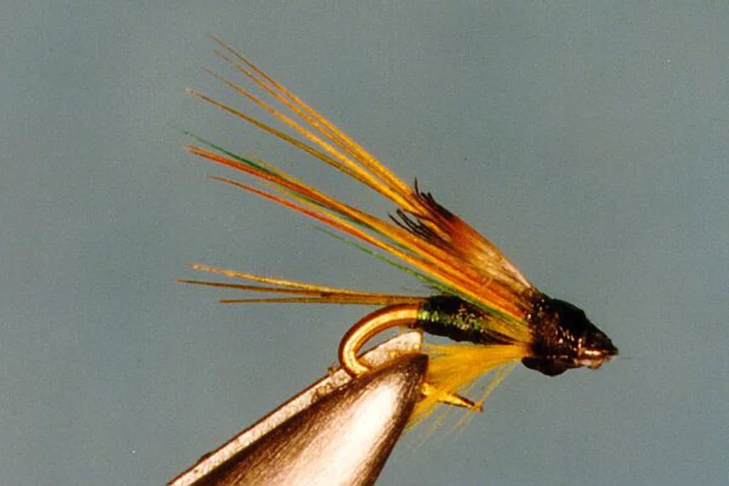 Marvin Nolte's Green Highlander suffers somewhat under the limited space on the #32 hooks. A full dressed salmon fly was not my first guess by looking at it.