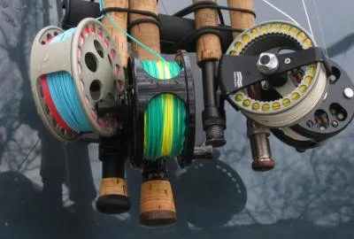 Reels in a rod holder on a car gives a nice impression of the hectic mood of moving from spot to spot
