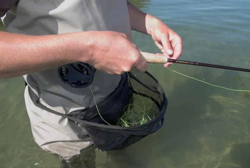 The open weave of this JW Outfitters basket lets water pass in and out. A fiber rod along the edge keeps the basket open