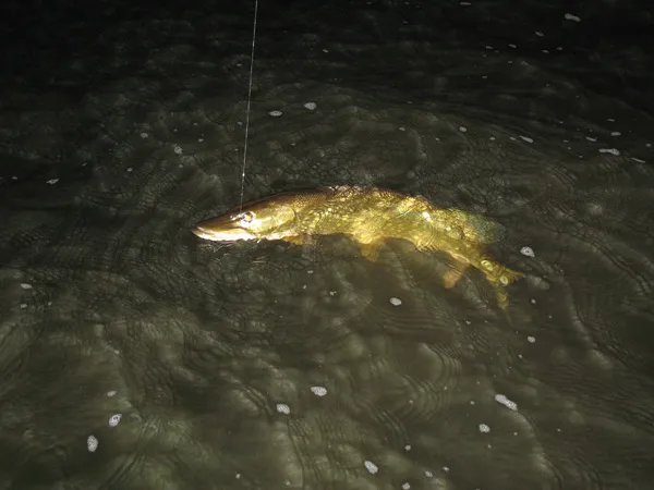 A savanah-pike is about to get off