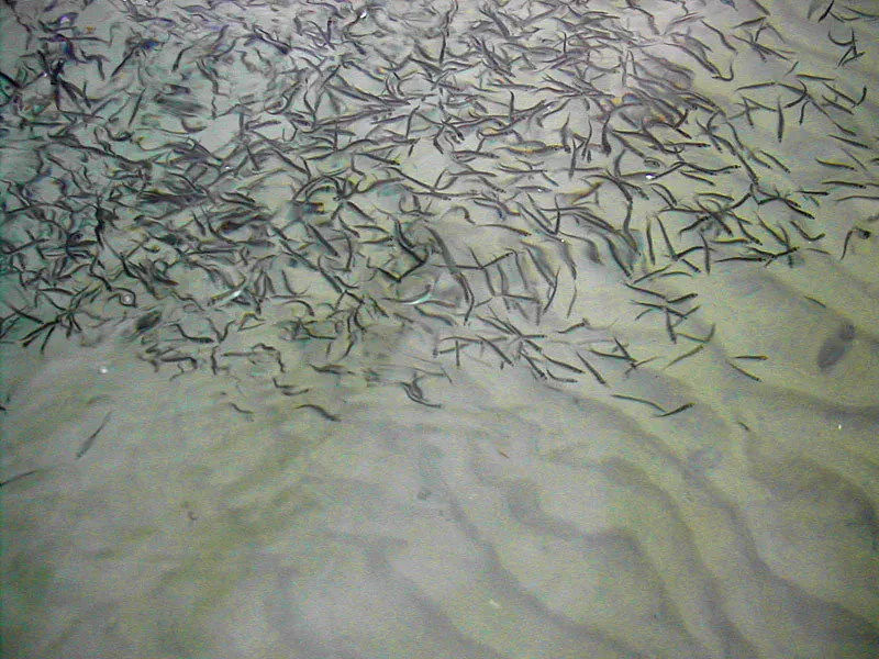 The Foileel is a good imitation of fish like these sand eels, which are about 1 or 1½ inches long and can appear in amazing numbers