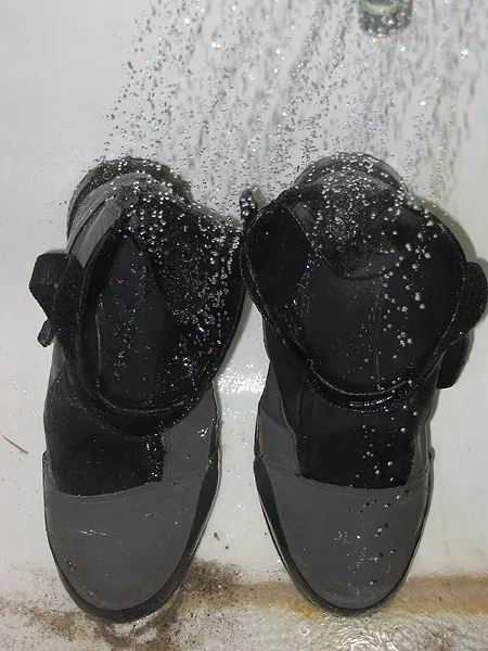 All boots should be rinsed under fresh tap water or in a clean stream no matter whether they are used for fresh or salt water. The rinsing followed by a slow drying will prolong their lives significantly.