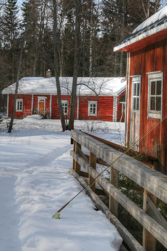 A deep path on the snow leads a fly fisherman to one of the most productive pools in river Läsäkoski.