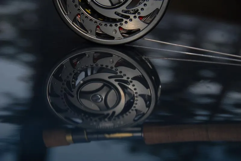 This reel waiting to go fishing was shot on a dark green car roof, playing with the reflection rather than the reel itself