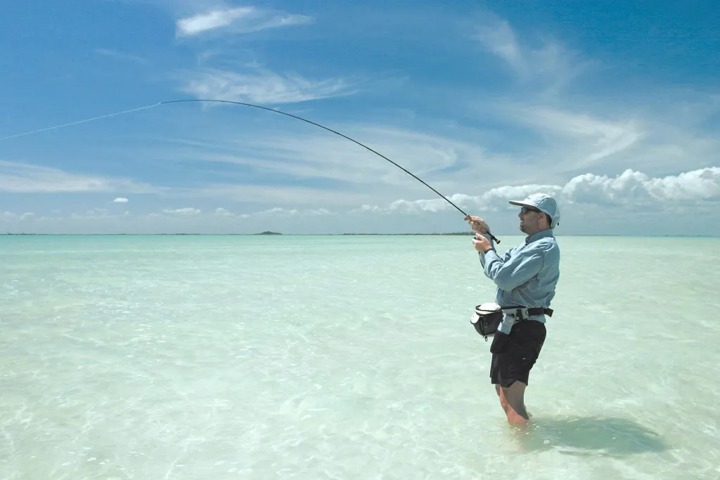 Once you have set the hook with a strip strike, you have immediate contact with the fish and can fight it - or let it run as in this case with a bonefish