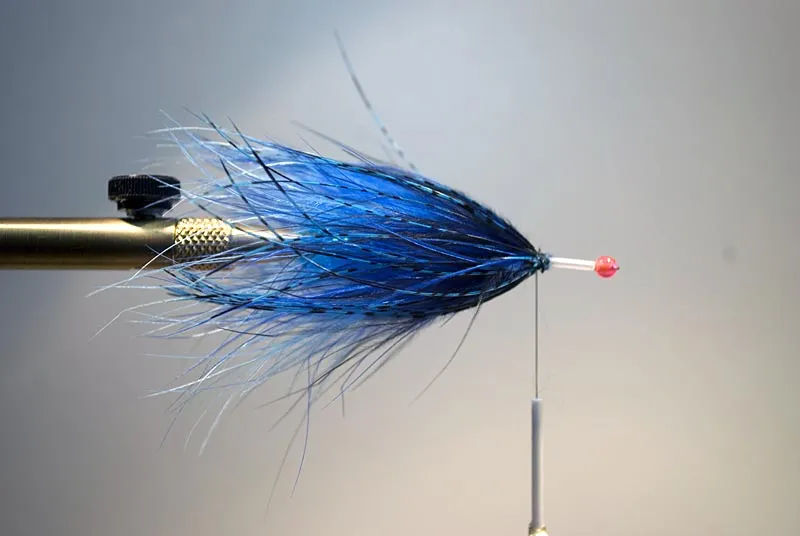 Once the amherst is spun, wrap it as a hackle in front of the marabou