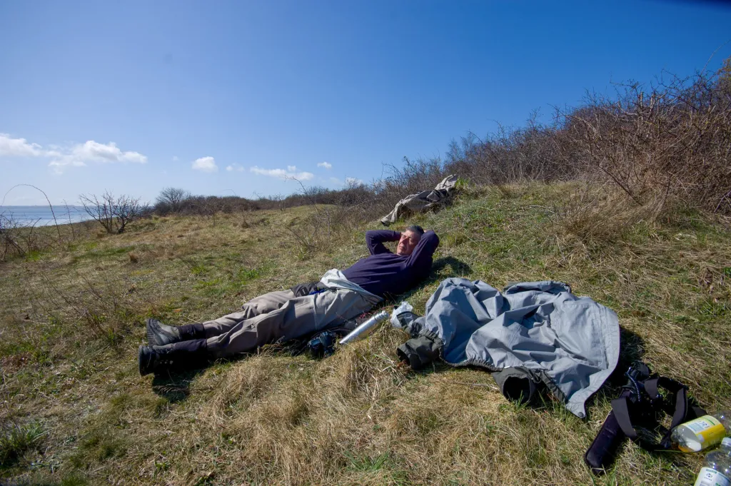 You can lift your head now and then to watch the water and your fellow fishermen