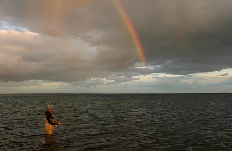 The occurrence of a rainbow may also be a magic moment. Here the angler even looks at the arc on the sky and creates a connection to the beautiful phenomenon.