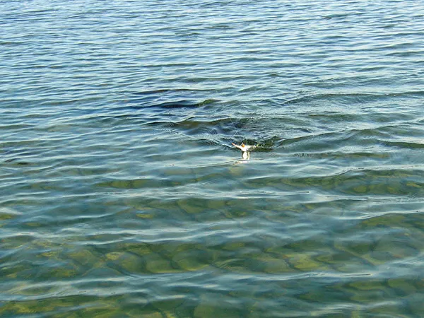 A garfish (Belone belone) on its way to hand after having swooped a PropPopper in the surface.