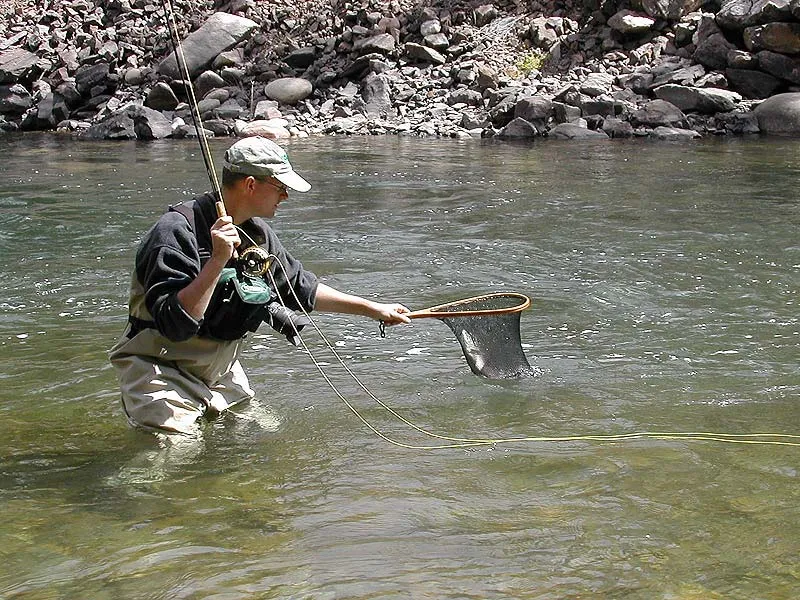 Yet another salmon in the net. We took most of the fish in a small run right in front of Martin, where the water was deep and the bottom paved with fish.