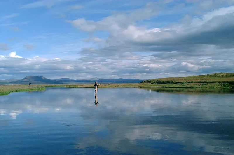 An amazing pool on the Litlá - a wide, slow and shallow stretch with some deeper runs. Fish were rising, probably to mosquitoes, which hatched in plenty numbers during calm periods.