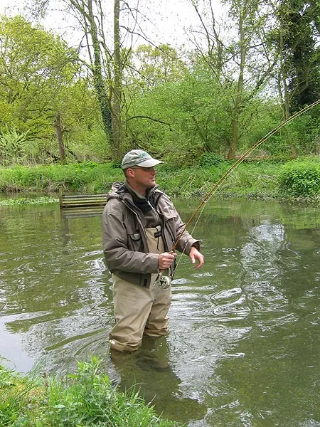Me and my cane rod are into a good Test brown trout.