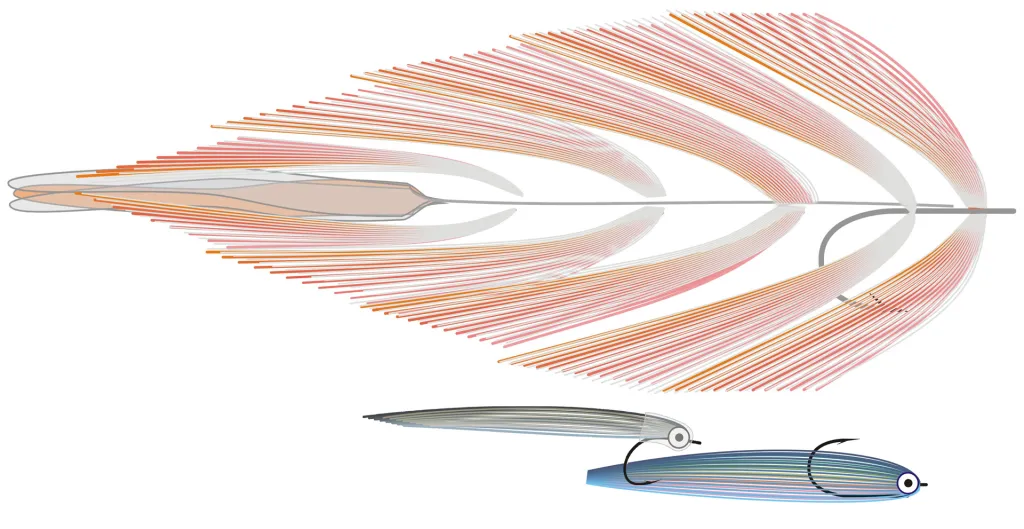 The Beast is tied on an extension or on shanks, but still uses a short hook in the front.