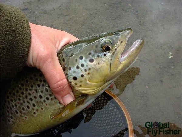 A nice Beaverkill brown trout that rose to a #14 CDC&Elk dry fly in Horse Brook Run