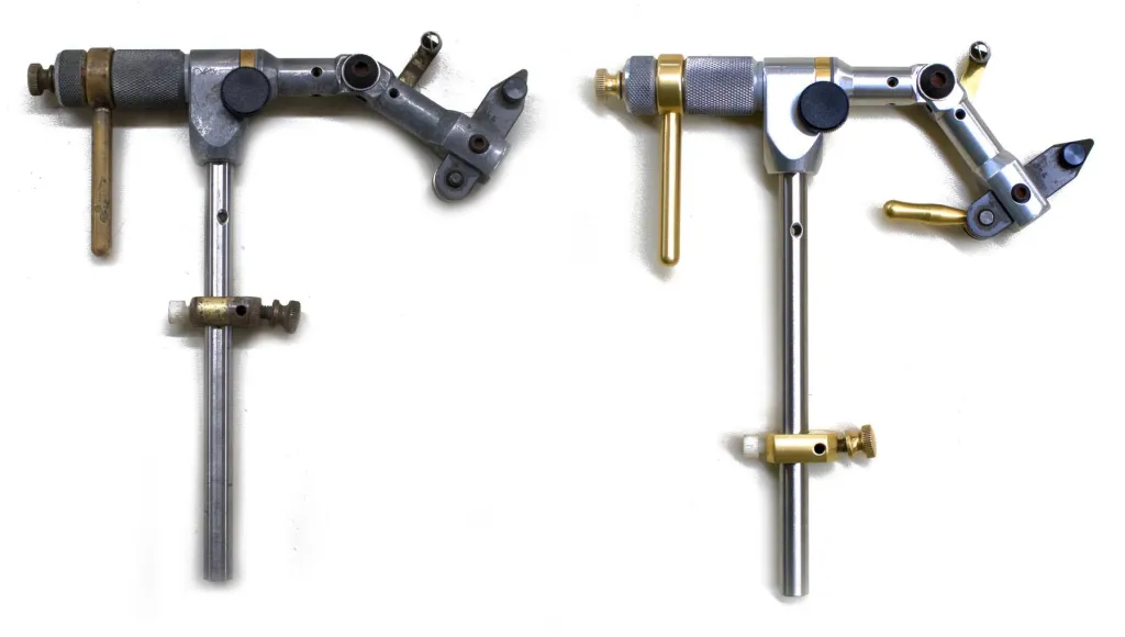 A Renzetti vise before and after a factory refurbish. This vise backpacked across the world and was definitely exposed to elements most vises never see. Nothing but the broken cam was replaced on the vise. The rest was restored.