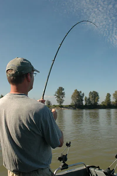 A sturgeon will put a bend in any rod. And yes, this is a baitcasting rod! The Global Baitfisher strikes again!