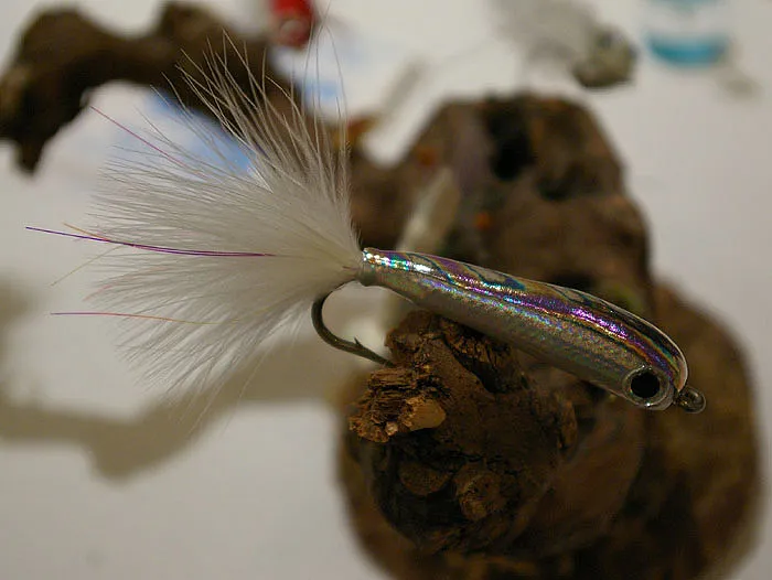 I don't know the name of this fly, but it is off the vise of Blaine Chocklette of Sili Skin and Loco Foam fame. This fly looks like a hard bodied "walk the dog" sort of lure you'd find in someone bass boat, but it is actually hollow and pliable. Man - that looks deadly.